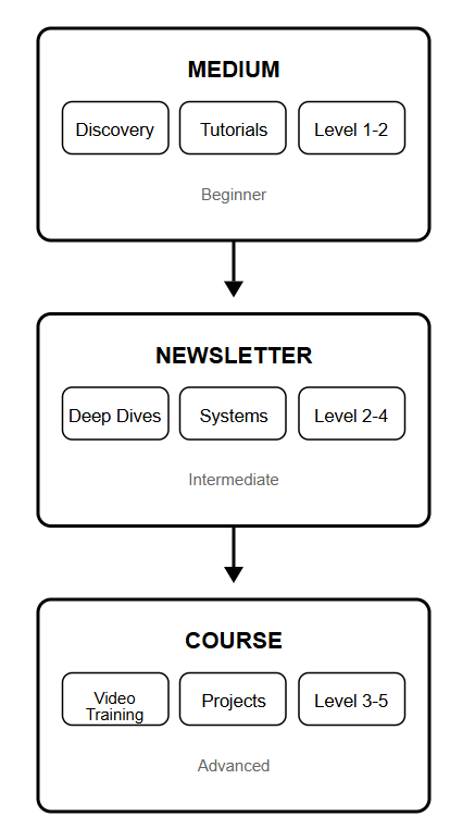I’m building a complete learning ecosystem around Claude Code—each piece designed to meet you where you are and take you further.
