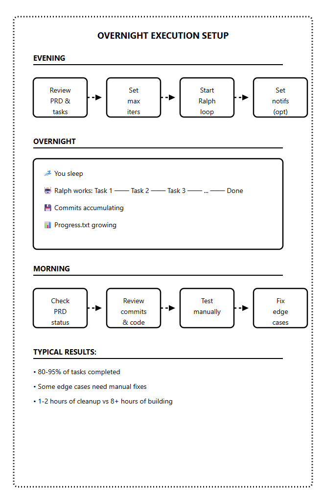 You still need to design your tasks, write clear criteria, and review the output. Ralph automates the iteration cycle, not the engineering judgment.