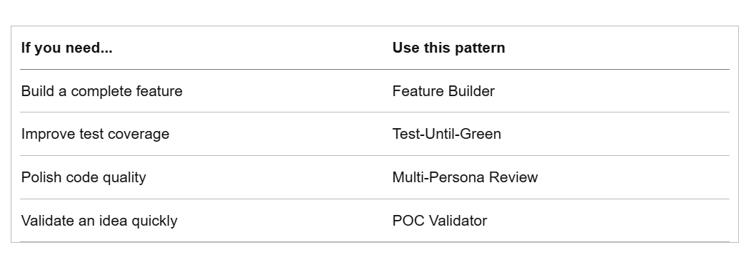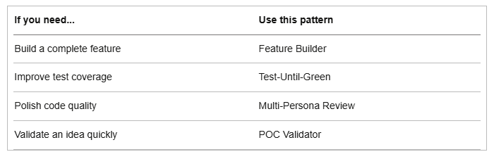 You can also combine patterns. Build with Feature Builder, then polish with Multi-Persona Review.