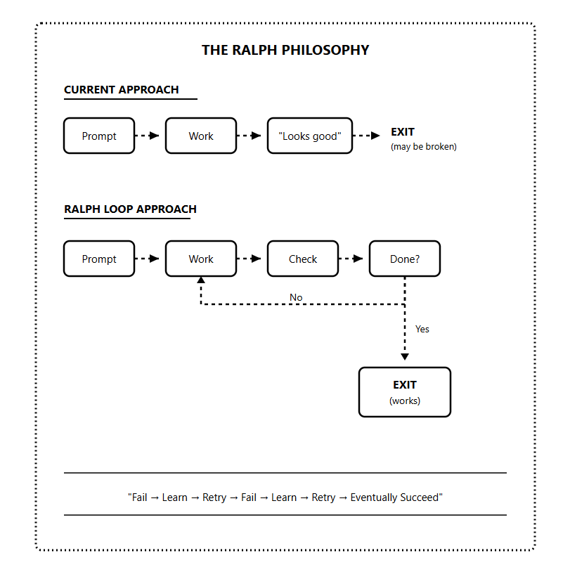 The key insight is that Ralph Loop treats failure as expected, not exceptional.