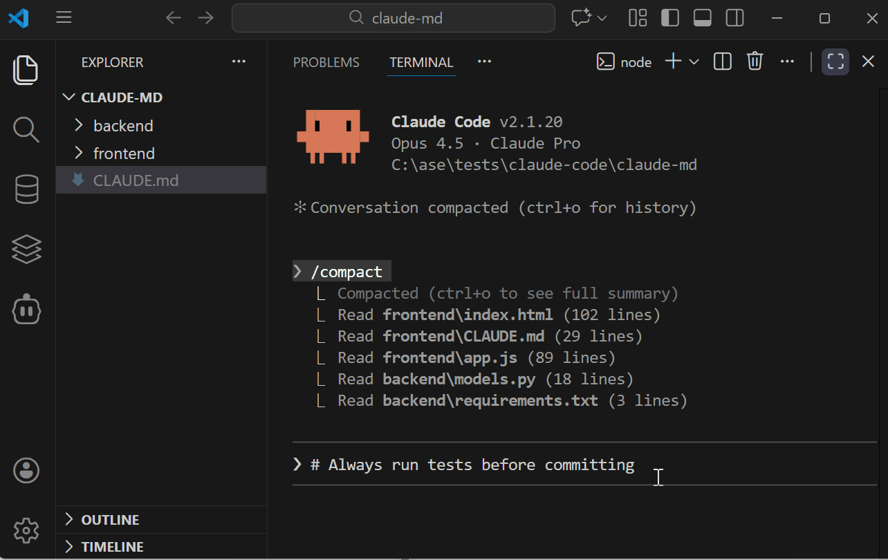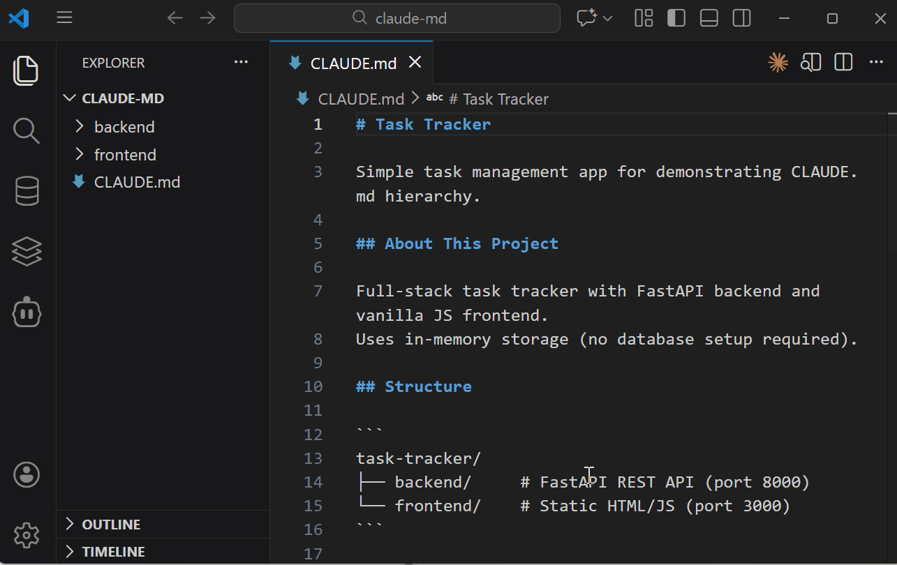 “This is a FastAPI project. We use SQLAlchemy for the database. Tests are in the /tests folder. Run pytest to execute them. Oh, and we follow PEP 8 with 100-character lines.”This creates a problem of constantly explaining your project details, and that is the problem CLAUDE.md solves.